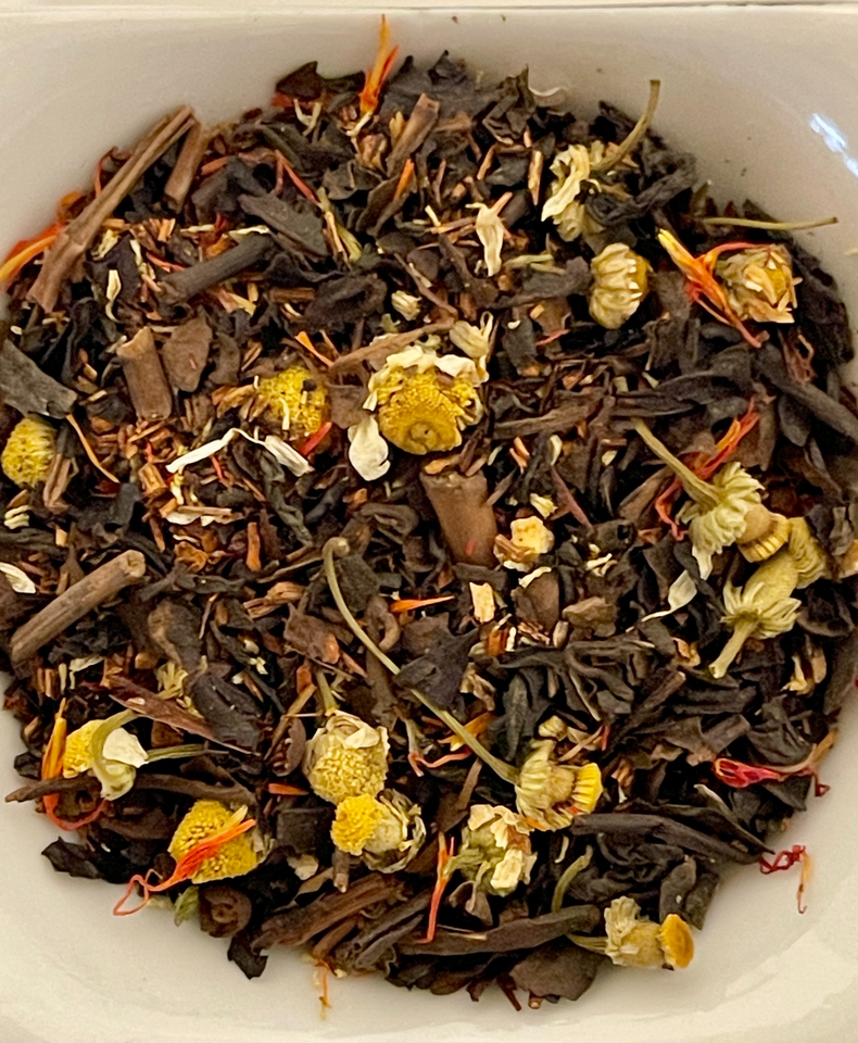 Ingredients: oolong tea, rooibos tea, chamomile flowers, orange, natural vanilla flavor, safflower & natural orange flavorLow